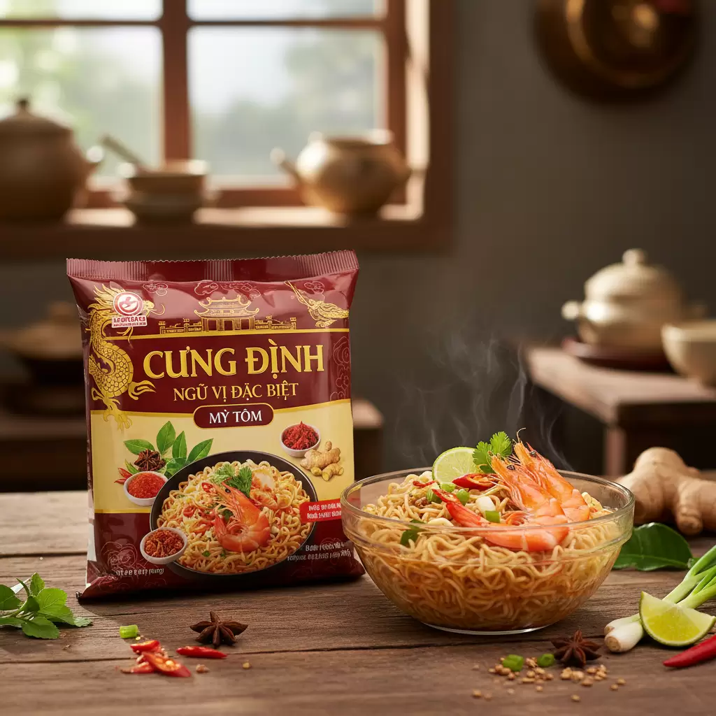 | Gói Gia Vị | Sử dụng muối biển tự nhiên, bột rau củ hữu cơ, và các loại gia vị chiết xuất tự nhiên. Không có MSG, chất bảo quản, hoặc hương liệu nhân tạo. | Chứa MSG (bột ngọt), Disodium Inosinate/Guanylate, hàm lượng natri rất cao, và chất tạo màu/mùi tổng hợp. |